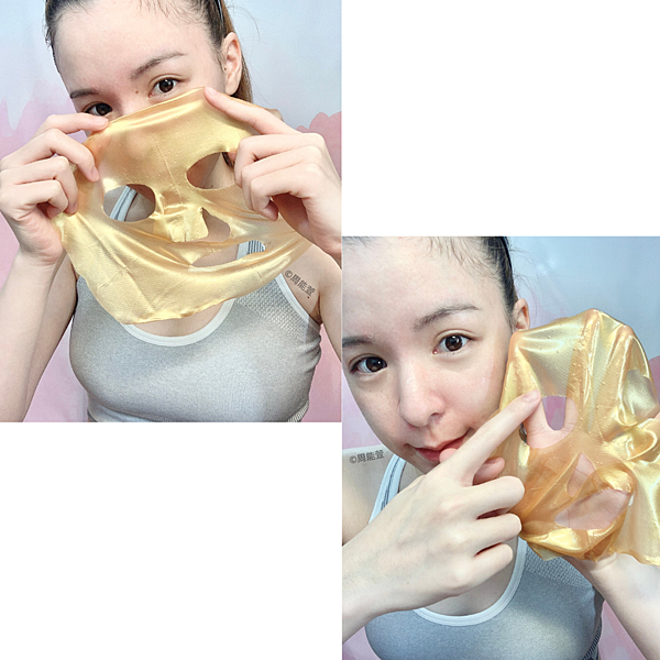 這整張 #黃金面膜 居然是「用100%精華液做成的」膠元多醣膜!